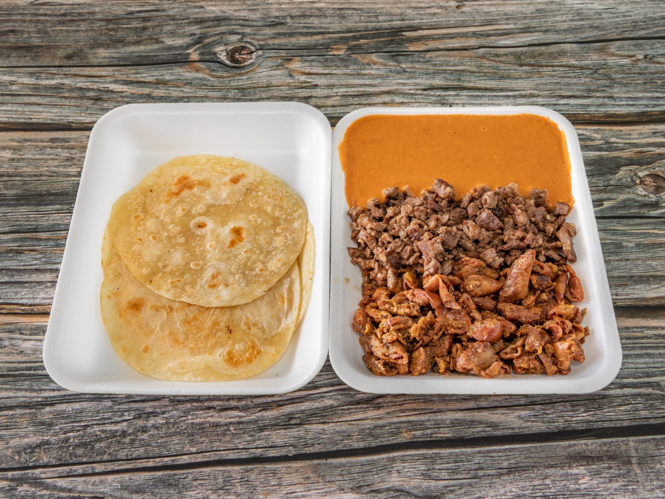 Tripa and Asada Plate: Savor tender grilled carne asada served with 5 warm tortillas, flavorful beans, and access to our fresh salad bar. Customize your meal with our selection of salsas, toppings, and sides for a delicious, authentic experience!, We Only Serve Certified Black Angus Meat