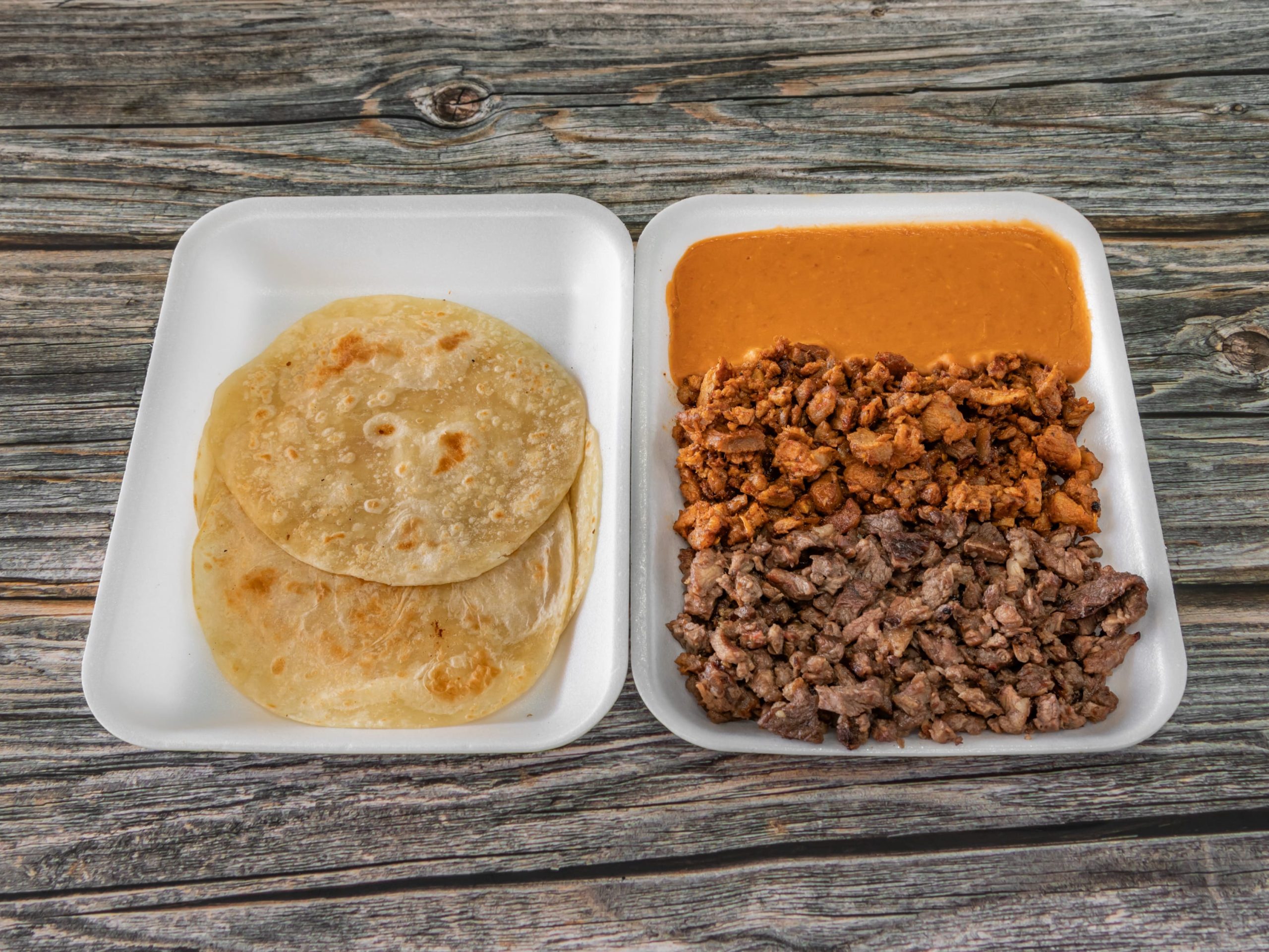 Mixto Plate — Now Upgraded with More Meat: Savor extra portions of tender Asada and Pastor, served with 5 warm tortillas, flavorful beans, and access to our fresh salad bar. Customize your meal with our selection of salsas, toppings, and sides included on each order for a delicious, authentic experience.